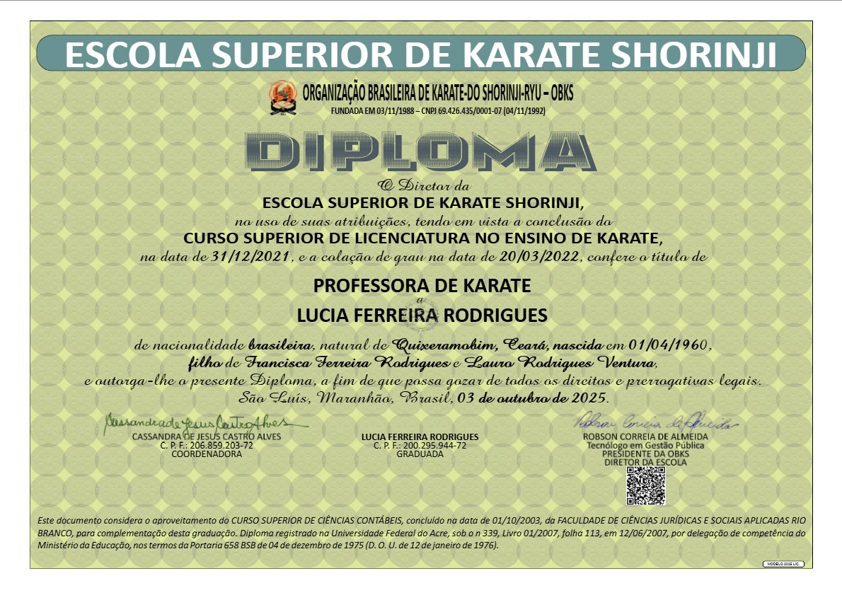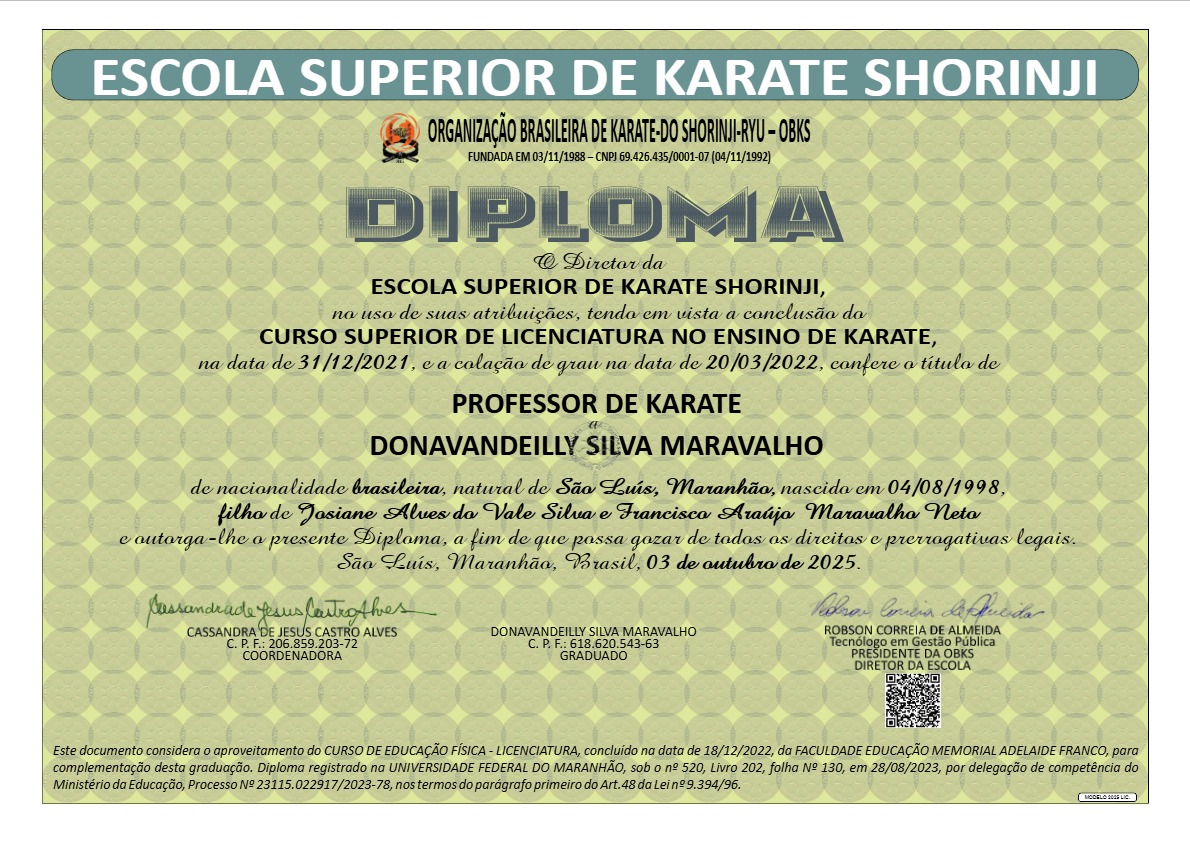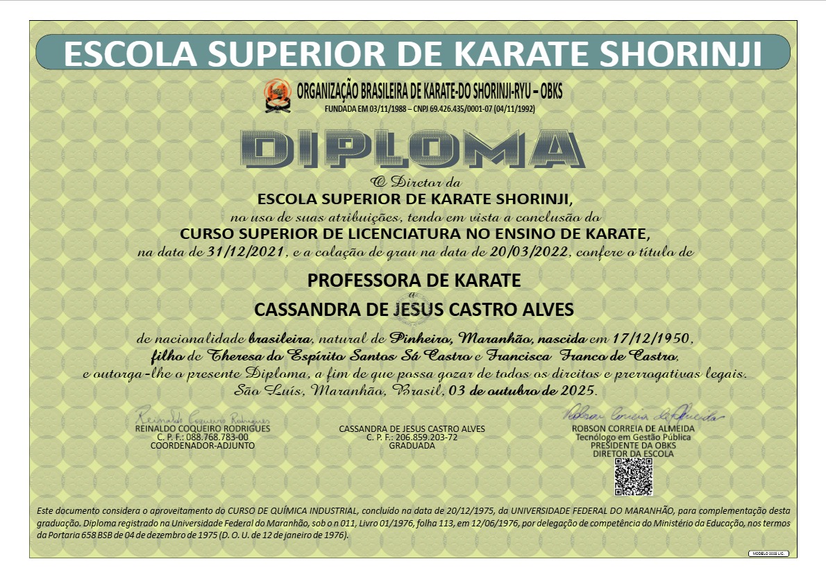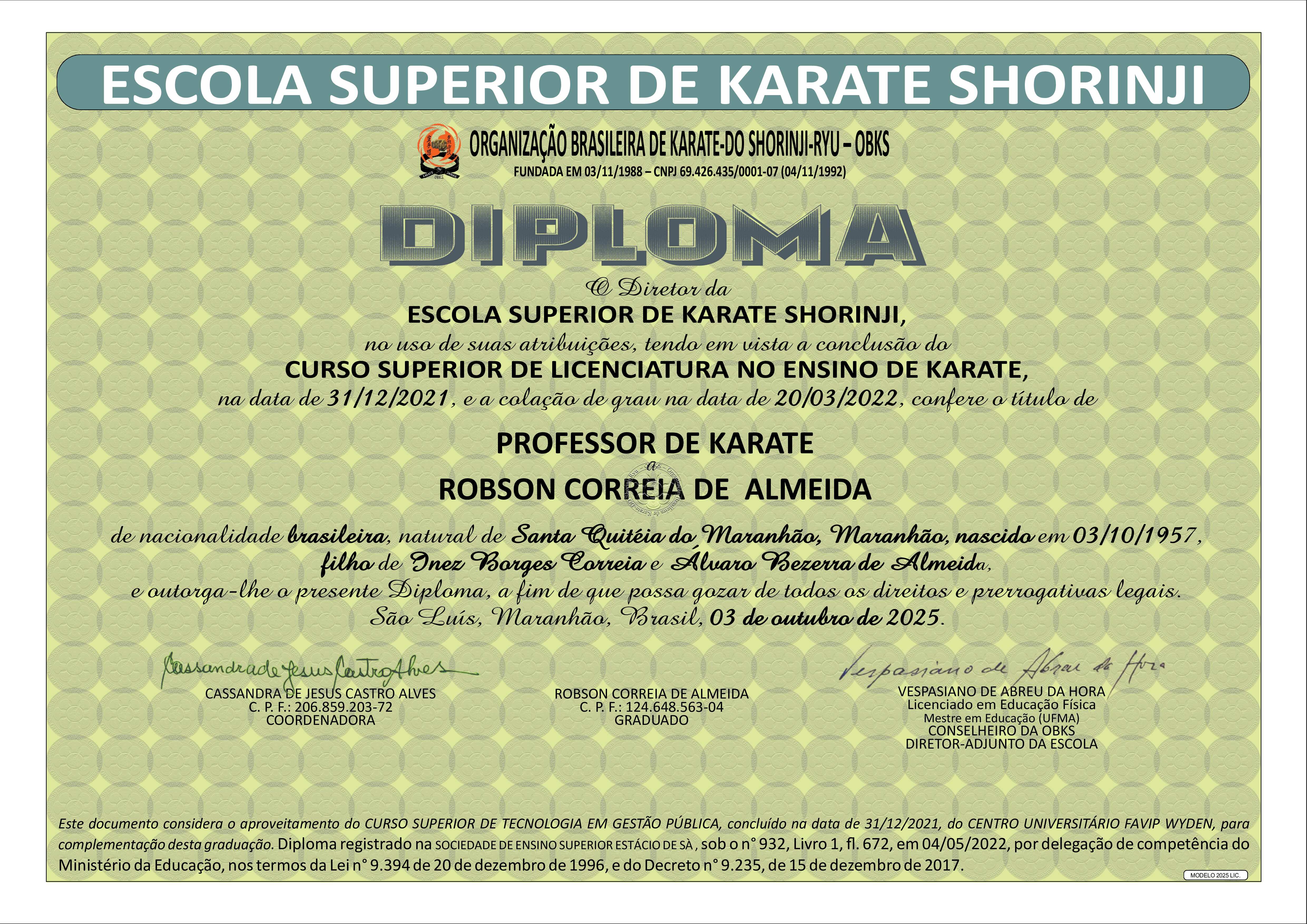 3º DAN (03/10/2025); 2º DAN (04/11/2021); 1º DAN (2017). Coordenador de Eventos para o Estado de Rondônia. |