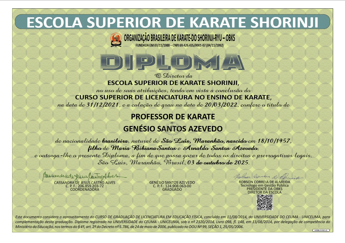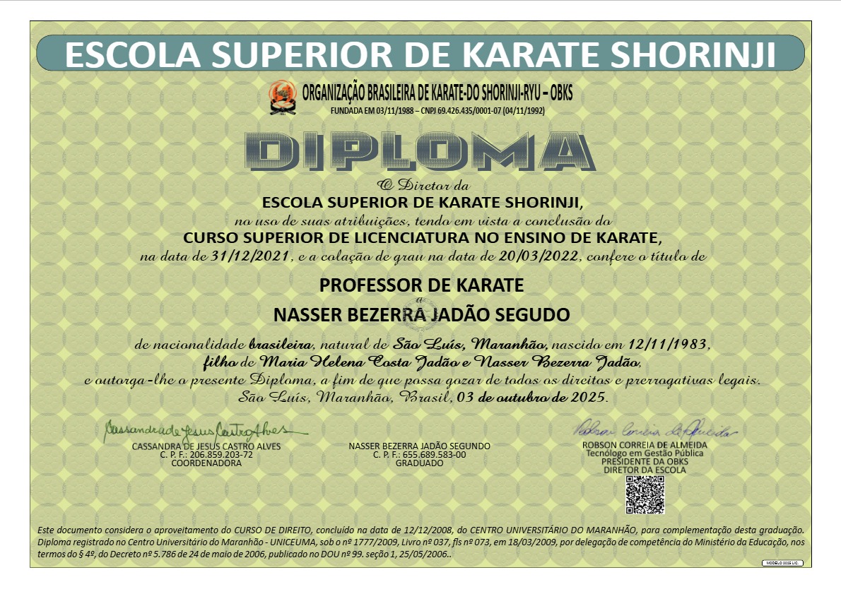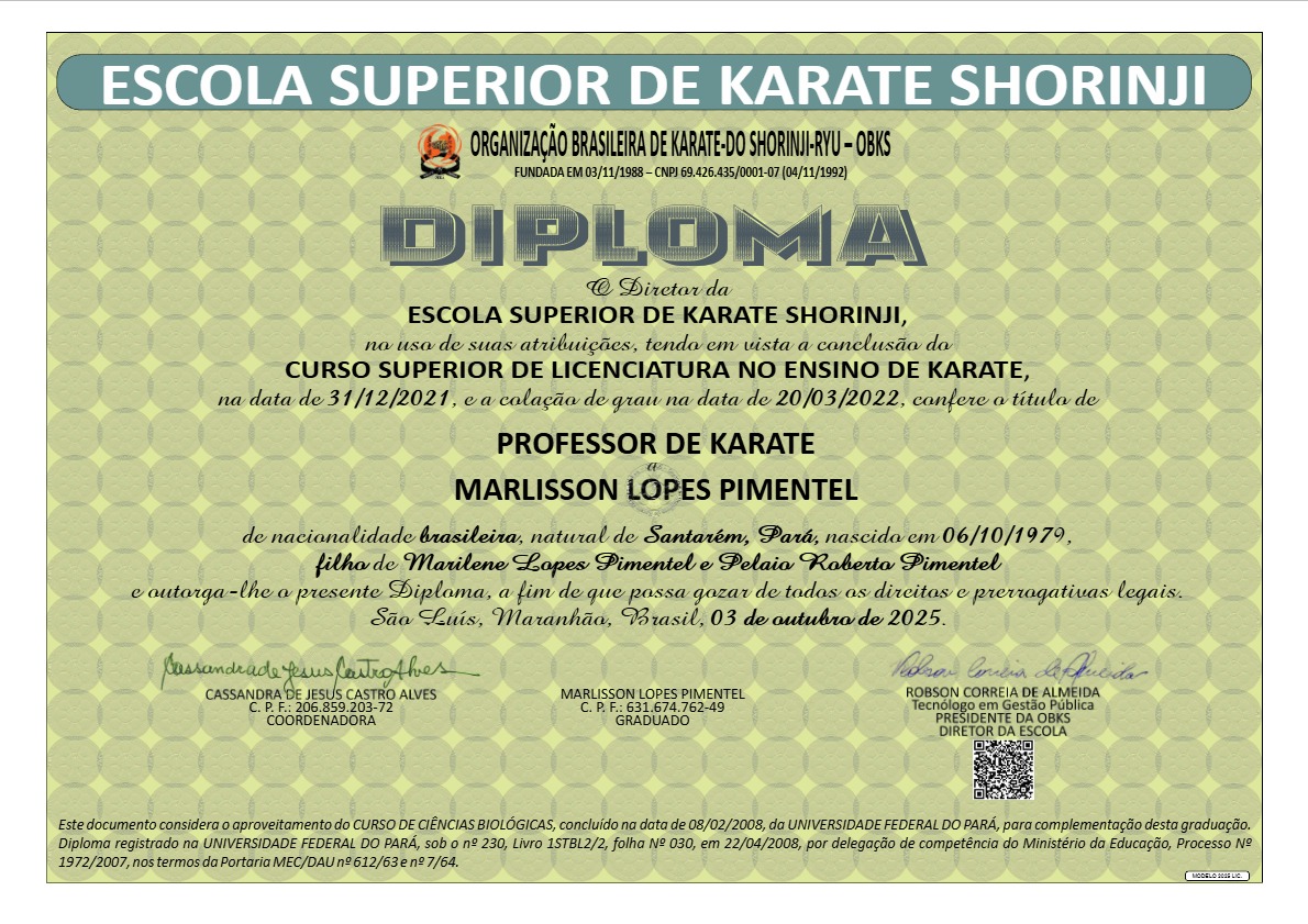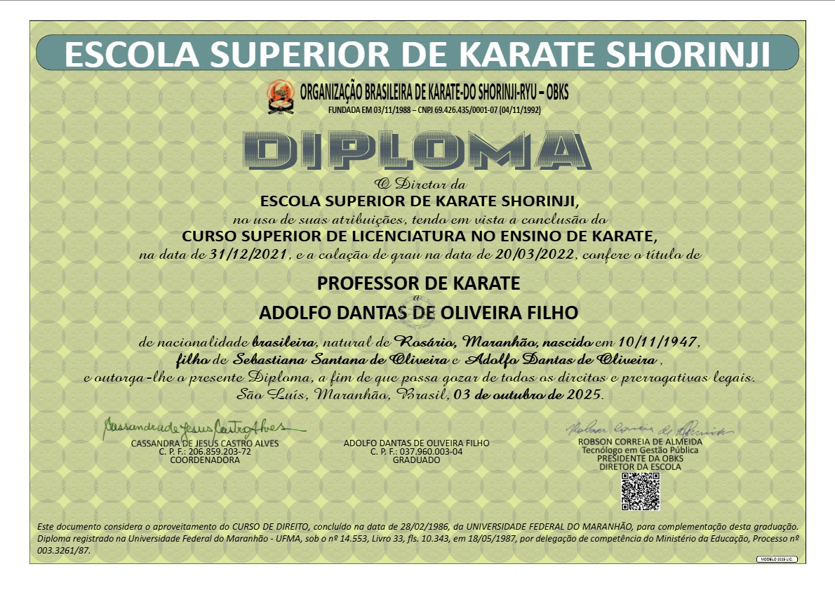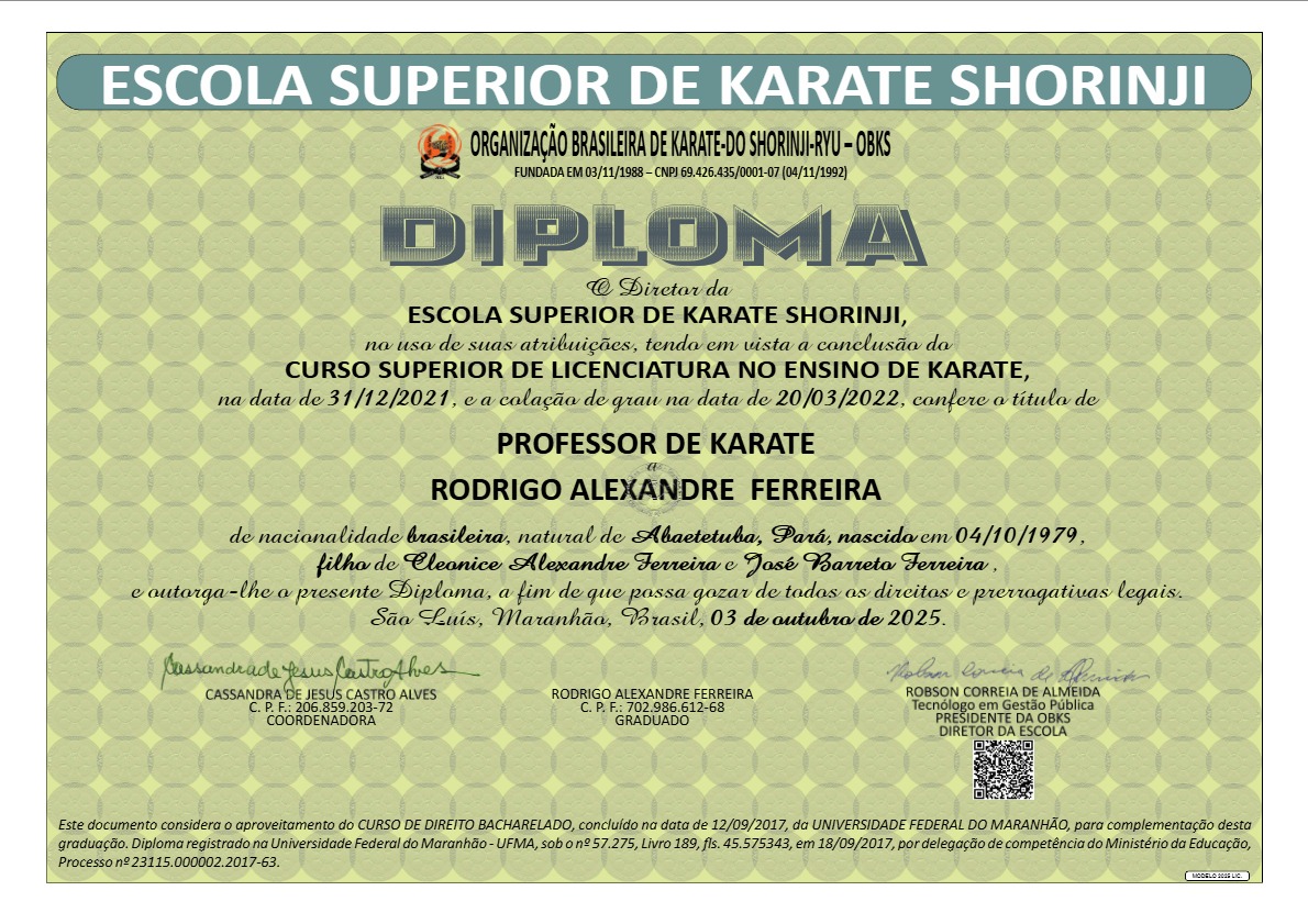 2º DAN (05/06/2023); 1º DAN (12/04/2012). |