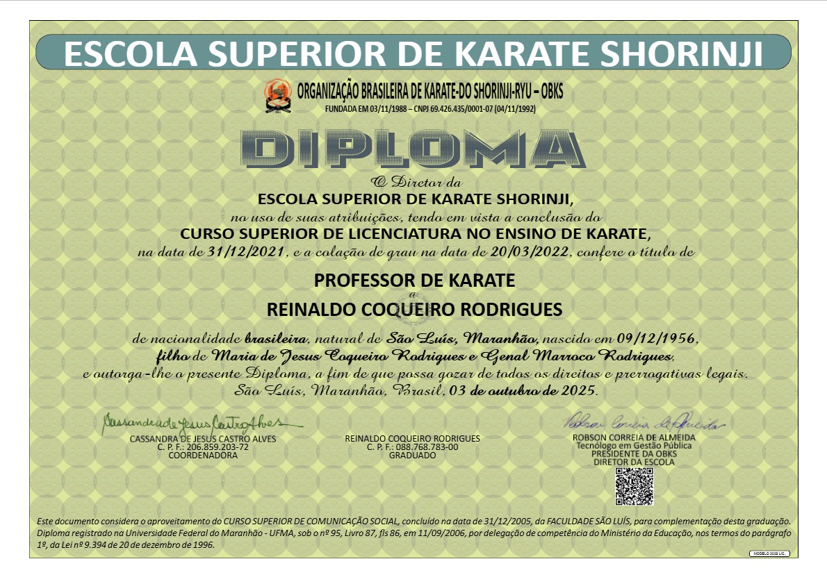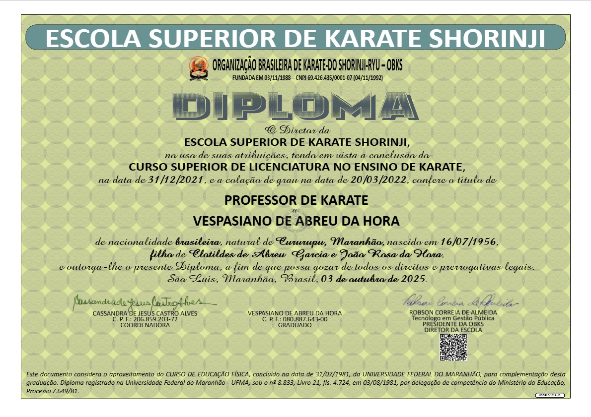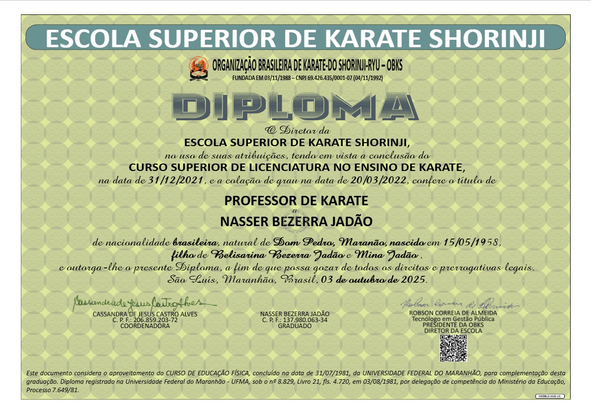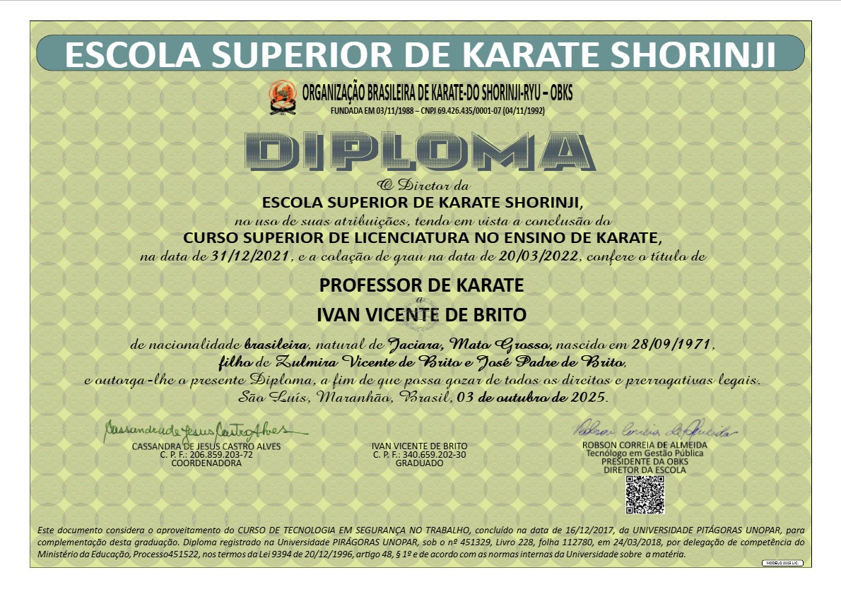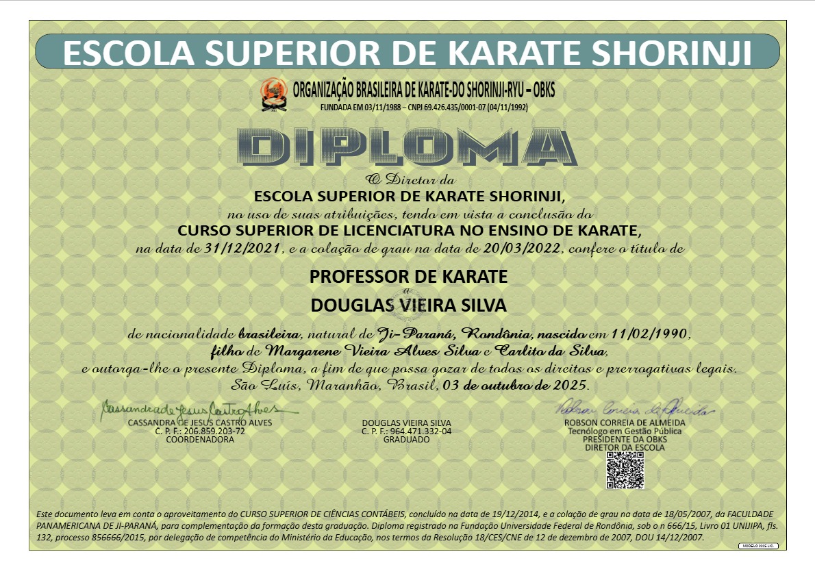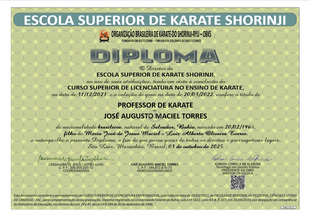 2º DAN (05/06/2023); 1º DAN (12/04/2012). |