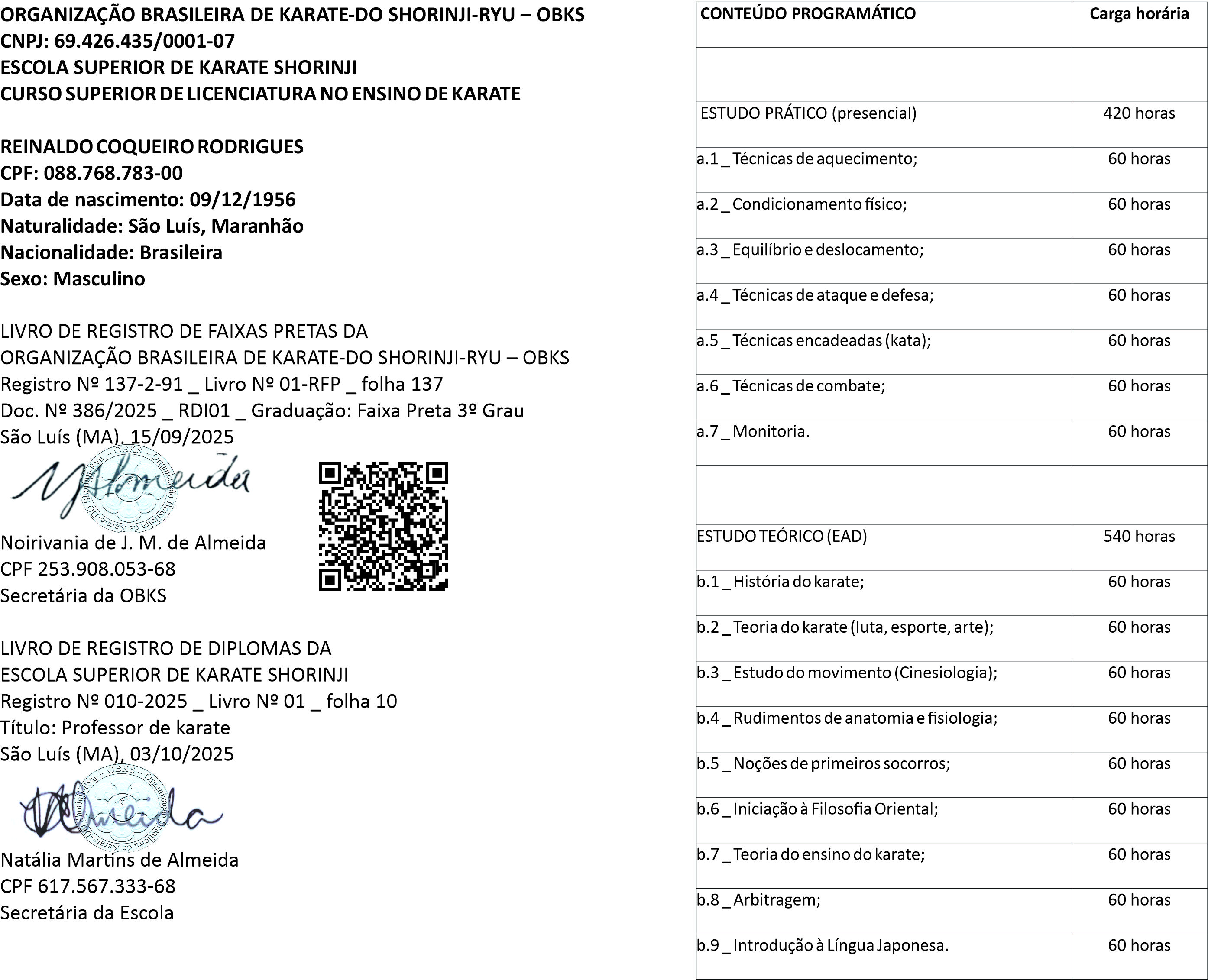 2º DAN (15/09/2025); 1º DAN (2022). |