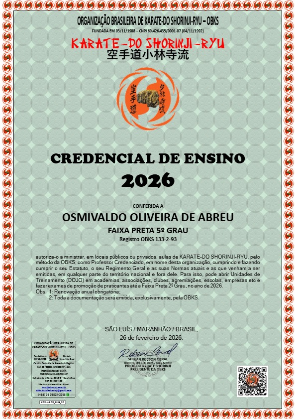 A Escola Superior de Karate Shorinji foi criada no ato da fundação da OBKS, para promover a formação, a capacitação e a atualização permanente de professores e de outros instrutores da Arte do Karate e da Filosofia Oriental ESTATUTO DA